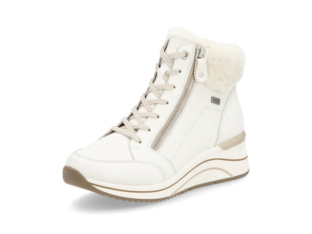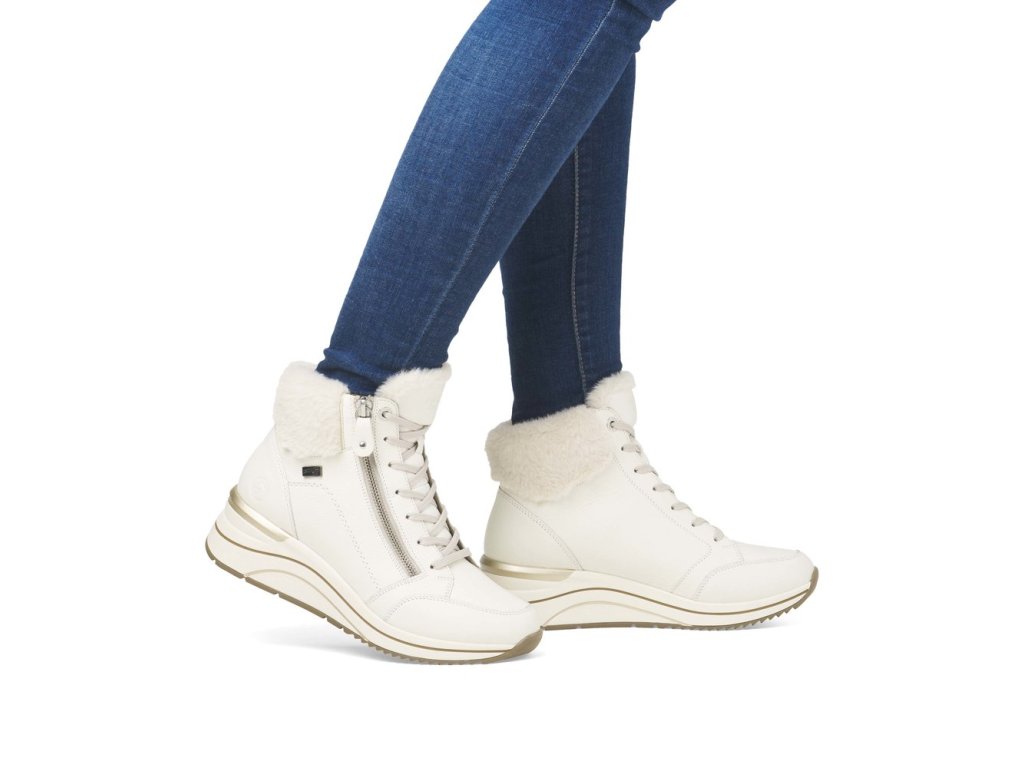 Dámská kotníková zimní kožená obuv Rieker Remonte D0T77-80 bílá s TEX membránou