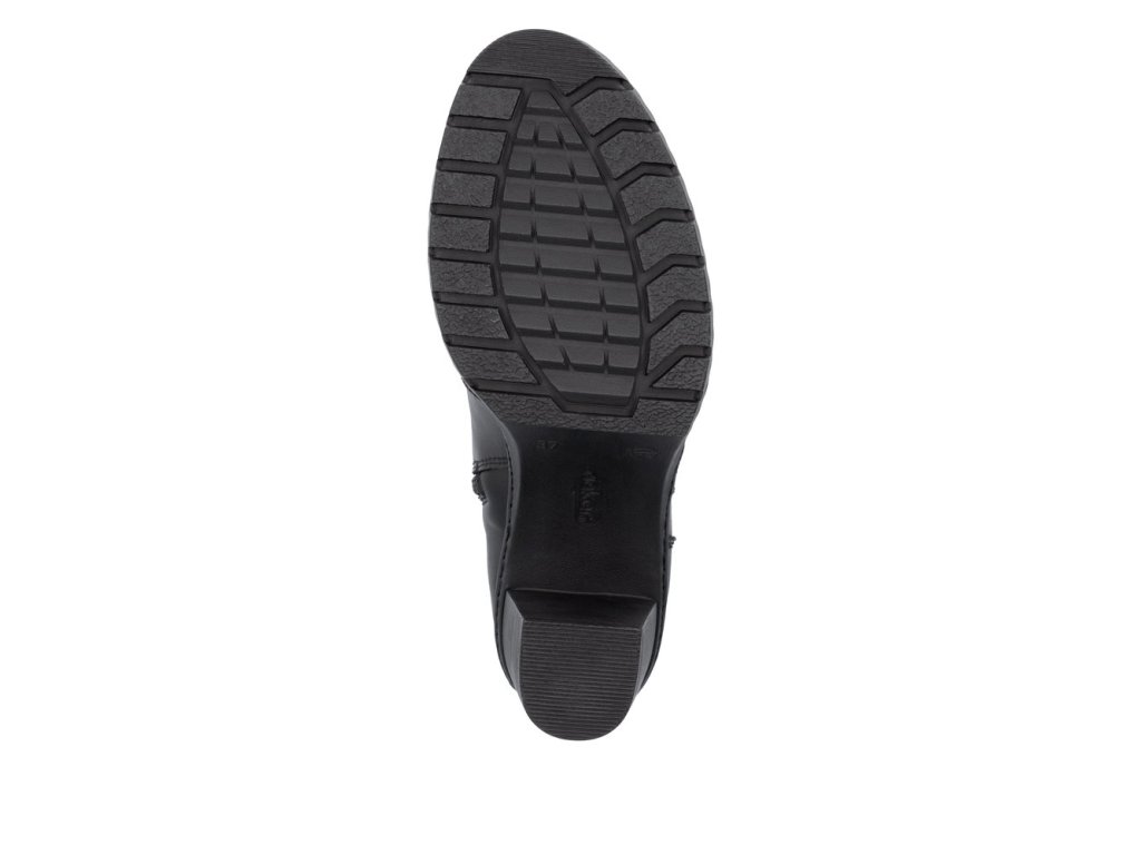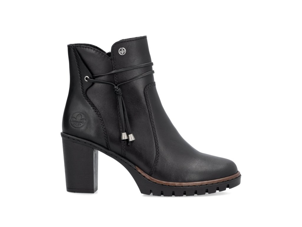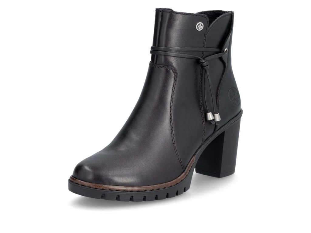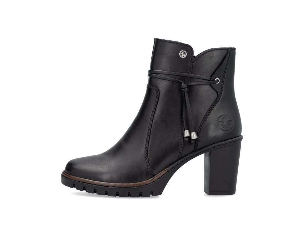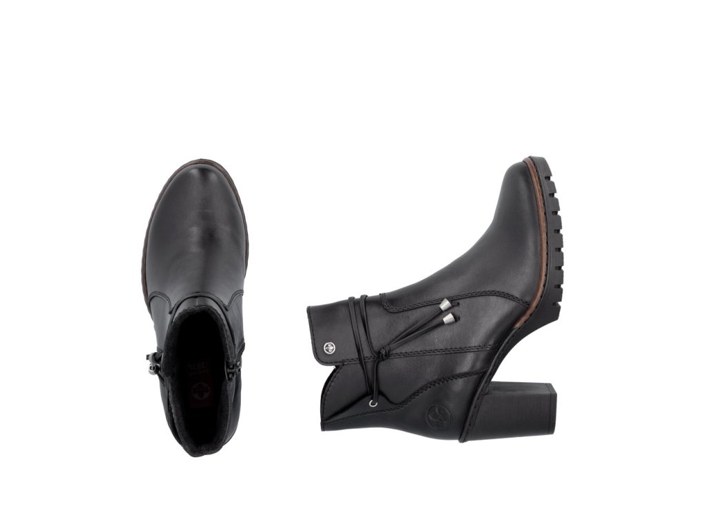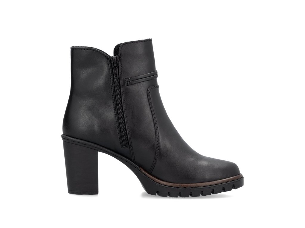 Dámské kozačky značky Rieker. Klasický kotníkový model v hladkém snadno údržbovém provedení svršku ke každodennímu pohodlného nošení. Snadné obouvání pomocí zipu. Jednoduchost střihu je zvýrazněna zajímavě řešenou horní částí a zdobnými provázky. Boty jsou vybaveny bytelnou vyšší podešví a středně vysokým klínkem. Vnitřek je vyteplen fleece podšívkou, stélka je zateplena flaušem.