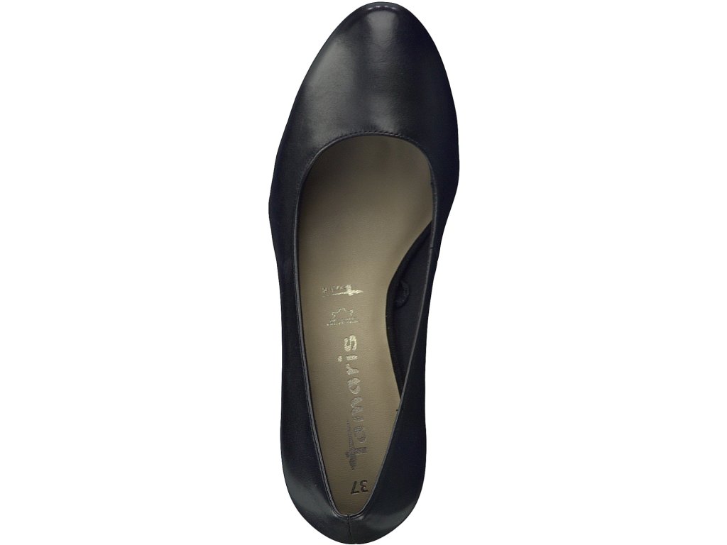 Dámské lodičky značky Tamaris jsou vyrobeny z pravé hladké kůže. Design podpatku skvěle doplňuje decentní manažerský vzhled tohoto modelu. Boty jsou velice pohodlné díky zakulacené špici, stélce s technologií TOUCH IT - paměťová gelová stélka . Podpatek je opticky vysoký, ve skutečnosti díky vyvýšené platformě pod přední částí je jeho výška (rozdíl výšky pod přední a patní částí) 5,7 cm. Navíc je vybaven technologií ANTI shok - tlumící rázy při došlapu.