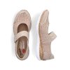 Dámská celoroční pohodlná obuv má svršek zhotovený z přírodní hladké kůže v béžové barvě s bohatou perforací hlavního vrchového dílu. Svršek je po celém obodu perforován a je doplněn nártovým páskem zapínaným na suchý zip VELCRO. Podšívka v celé obuvi je ze syntetického materiálu.