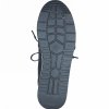 Dámské vycházkové boty značky Jana. Svršek je vyroben v kombinaci syntetiky v imitaci hladké kůže, dále textilu, který je ozdoben jemnými umělohmotnými peckami. Horní část paty a boky jsou navíc doladěny lesklými dílci. Vše v tmavě modré barvě, a to včetně tkaniček. Tento decentní a trochu tajemný vzhled doplňuje kontrastní výrazná a svižná podešev v bílé barvě doplněné tmavě modrou.