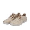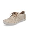 Dámská celoroční obuv oblíbené značky RIEKER má svršek derbového střihu s uzavíraný textilním šněrovadlem. Svršek je bohatě perforovaný což zvyšuje komfort při užívání. Celý svršek je vybaven podšívkou a koženou vnitřní stélkou podlepenou latexem.