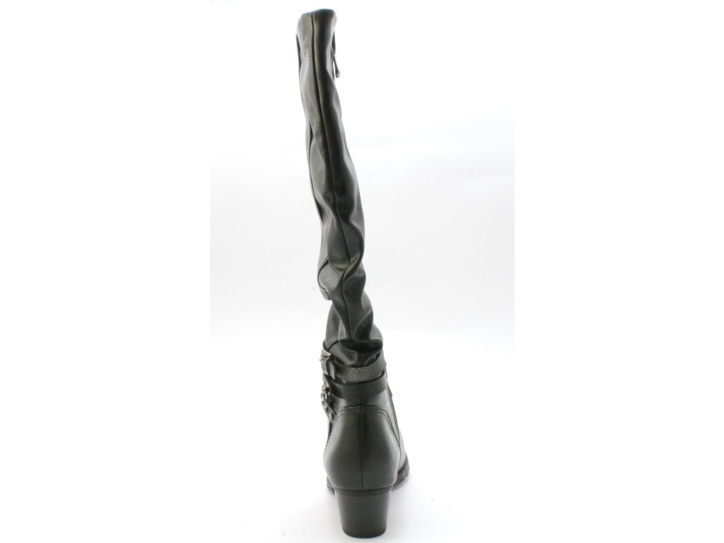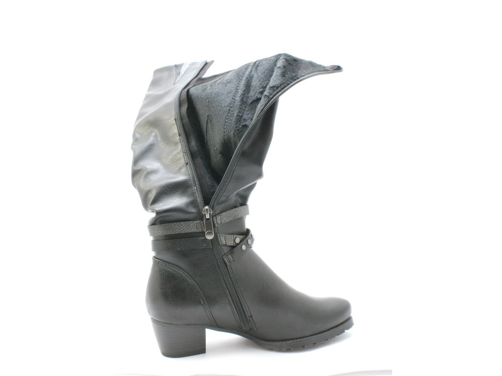 Model je vyroben z jemně nakrčené eko kůže. V horní části je všit gumový klín pro pohodlnější přizpůsobení se potřebám vašeho lýtka. Vnitřní část je po celé délce vyteplena textilním heboučkým chlupem. Vyteplena je také stélka. Podpatek o výšce 4 cm. Výška kozačky je 38cm. Obvod lýtka je 36cm. Údaje u vel.36