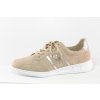 Dámské polobotky značky Rieker. NOVINKA PRO SEZÓNU 2020!! Boty jsou vyrobeny z eko kůže v designu jemně broušeného semiše v univerzální béžové barvě. Vnější strana nártu a svrček paty je ozdobena kovově stíbrnou barvou. Va vnější straně paty je vyraženo logo značky. Obouvání pomocí šněrování. Pěnová stélka s technologií MEMO Soft spolu s flexibilní podešví pro zdravou a pohodlnou chůzi. Stélka je vyndávací.