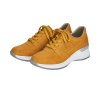 Dámské tenisky/polobotky značky Rieker. Moderní design spolu s moderní podešví na nízkém klínku. Svršek je vyroben v imitaci kůže v hořčicové barvě. Na vnější straně paty je vtištěno logo značky. Stélka je kožená a vyměkčená. Ovšem největší předností je podešev. A to nejen díky její dynamické linii, ale především její flexibilitou, lehkostí, systémem Antistress a anatomickou výškou klínku, podporující správné držení těla.