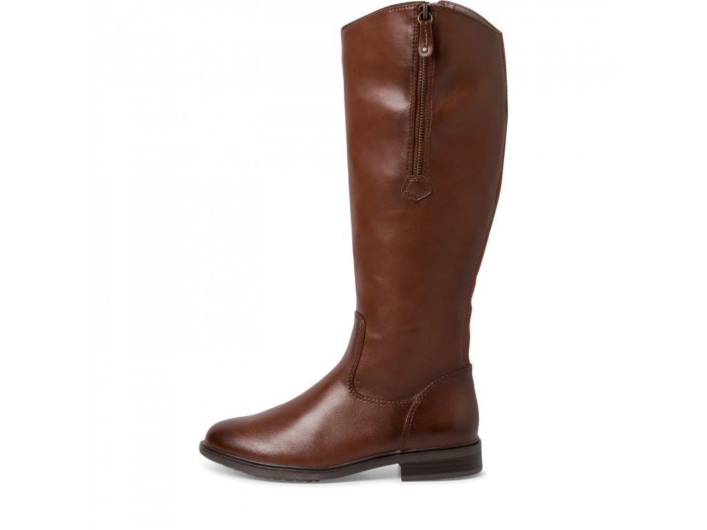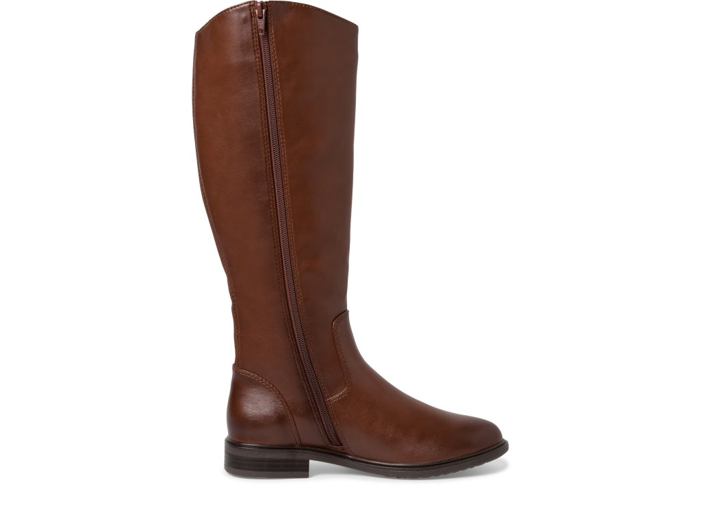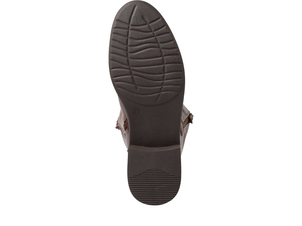 Luxusní kozačky značky Jana. Svršek je vyroben z eko kůže v nádherném odstínu hnědé barvy. Klasický kozačkový střih je na vnější straně lýtka doplněn okrasným zipem. Ten je ale také funkční, pod ním se skrývá možnost ho rozepnout dle potřeb a zvětšit tak obvod lýtka až o 2 cm. Vnitřek je vyteplen textilní podšívkou. Stélka je vyrobena z paměťové pěny a potažena eko kůží. Snadné obouvání pomocí zipu na vnitřní straně lýtka. Podešev v temně hnědé barvě je dostatečně vysoká, aby chránila před chladem ze spodu.