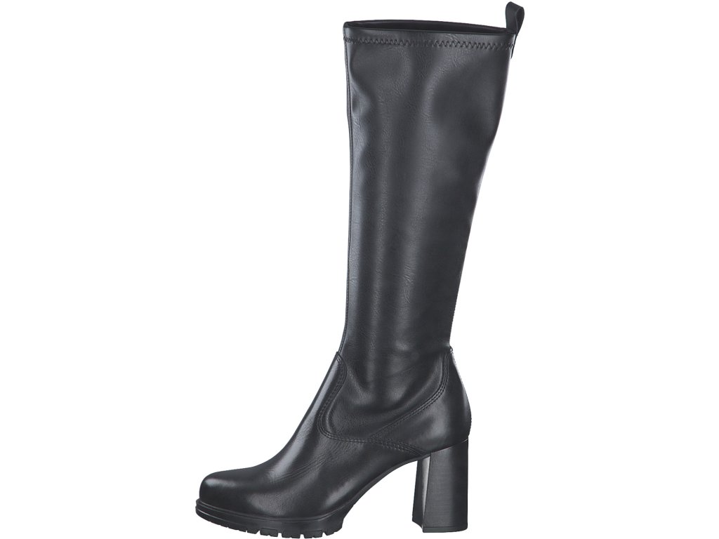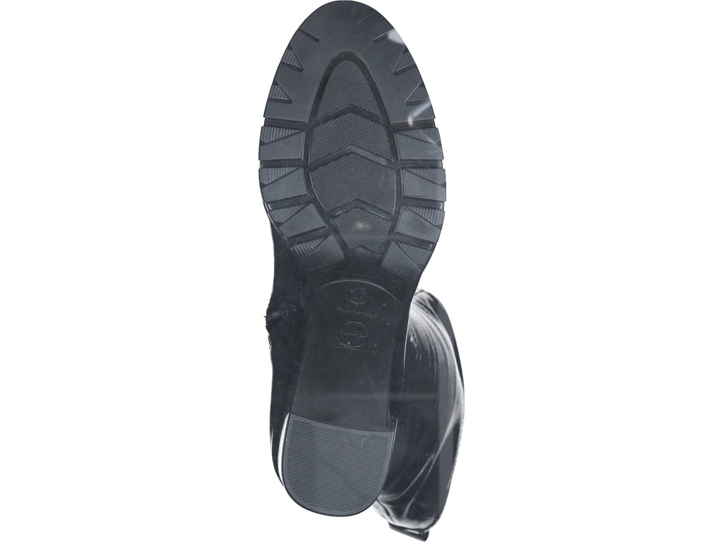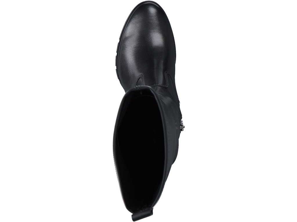 Dámské kozačky značky Tamaris. Velice elegantní model v černé barvě. Holenní část je pružná - tzv. natahovačka. pro snadné obutí jsou z vnitřní strany přes kotník doplněny zipem v černé barvě, takže při chůzi není vidět. Spodní část se zakulacenou přední částí pro pohodlí prstů. Vyšší podešev celkově podtrhuje honosný vzhled tohoto modelu. Vnitřek vyteplen textilní podšívkou.