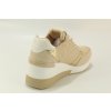 Tato módní dámská obuv se zvýšeným klínem má svršek zhotovený ze syntetického materiálu v béžové barvě v kombinaci s textilním úpletem.
