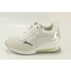 Tato módní dámská sportovní obuv se zvýšeným klínem má svršek zhotovený ze syntetického materiálu v bílé barvě v kombinaci s textilním úpletem.