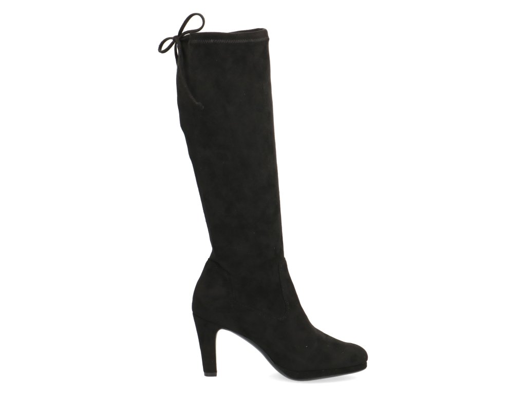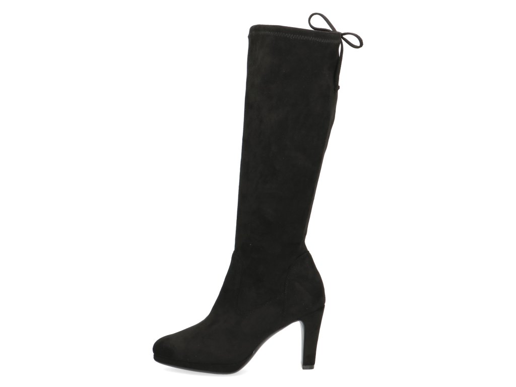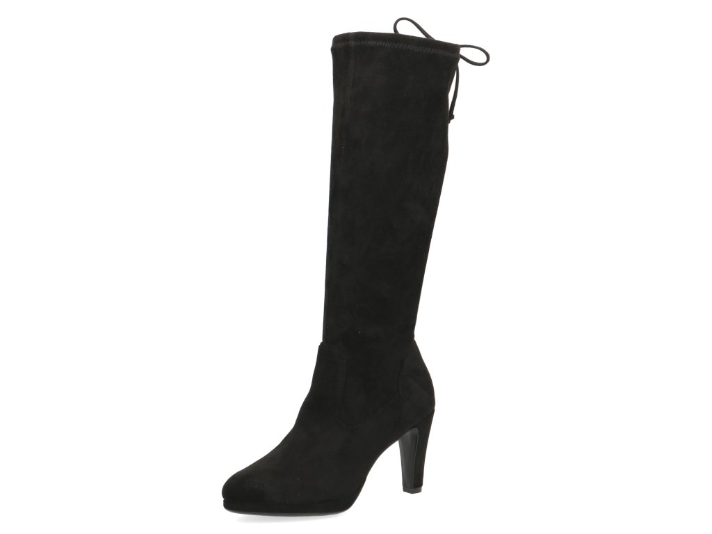 Dámské boty Caprice. Klasická černá natahovačka v provedení černého semiše na elelgantní platformě s podpatkem. Horní část je zdobena mašličkou. Spodní část je jemně vyteplena fleecem. Holenní část je vybavena pružným strečem. Stélka je vyteplena hřejivým filcem. Šířka prostoru v přední části - standartní. Klasická podešev na mírném podpatku jen podtrhuje decentní vzhled kozaček.