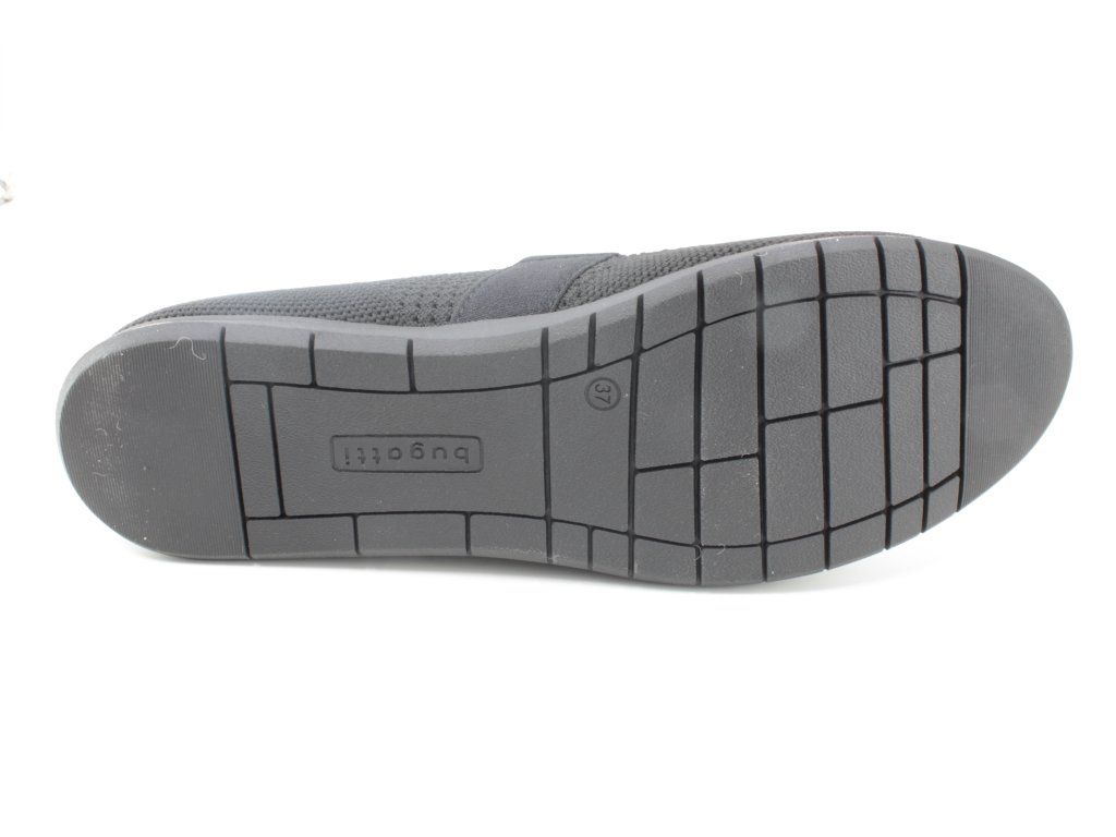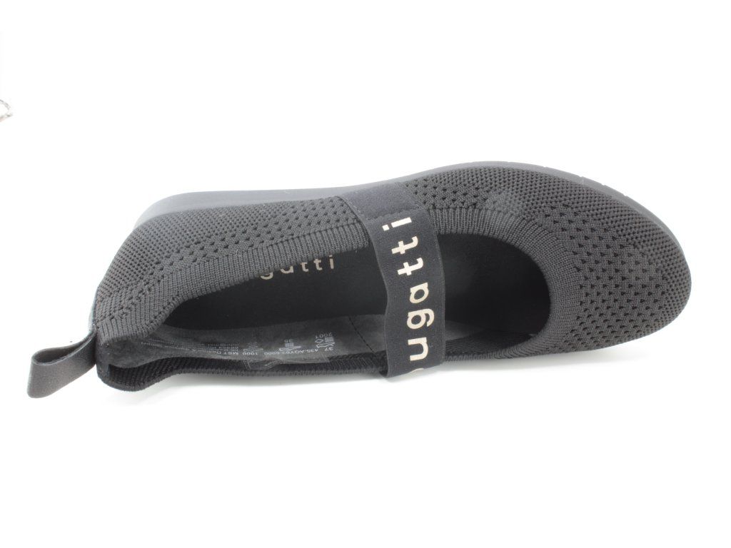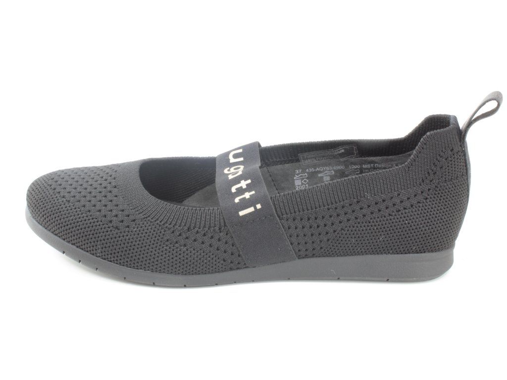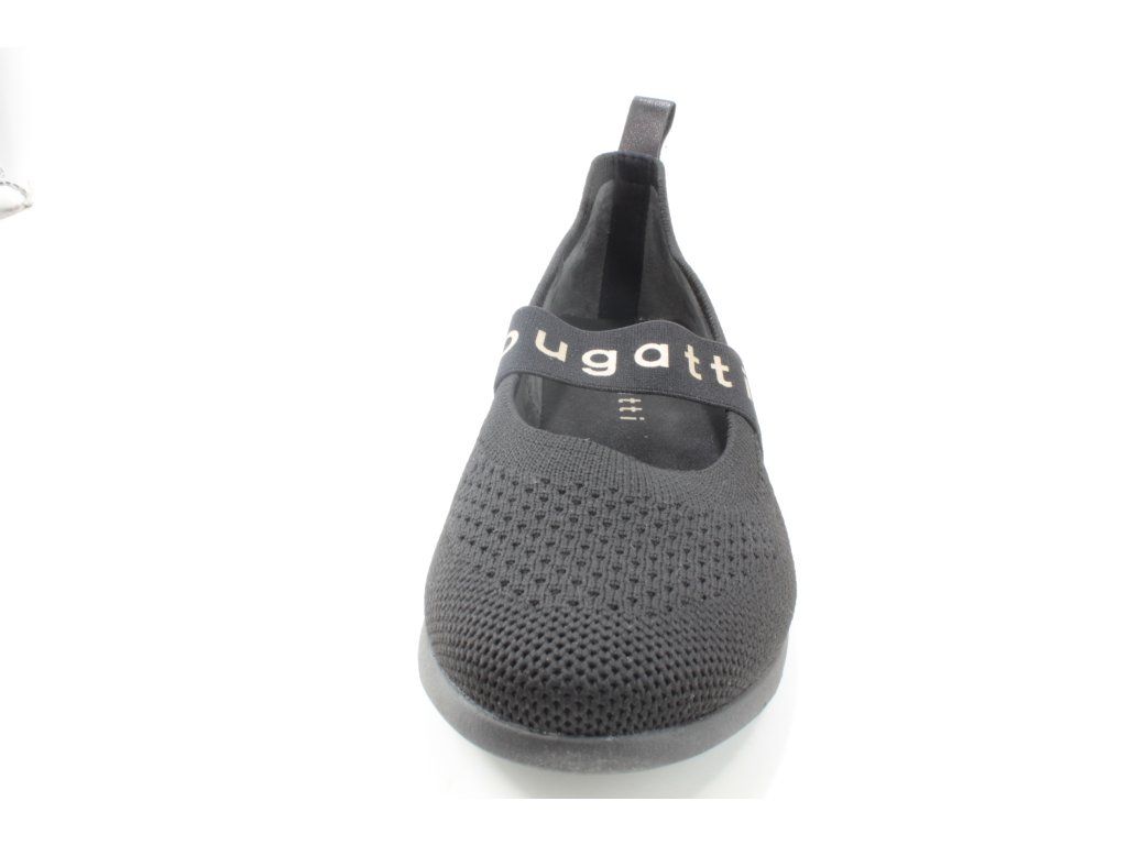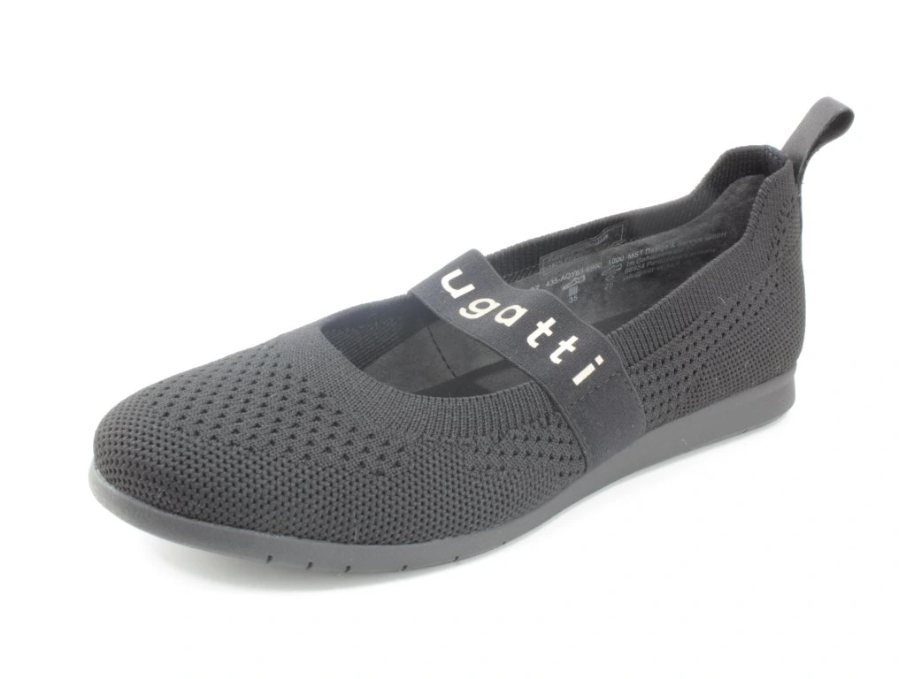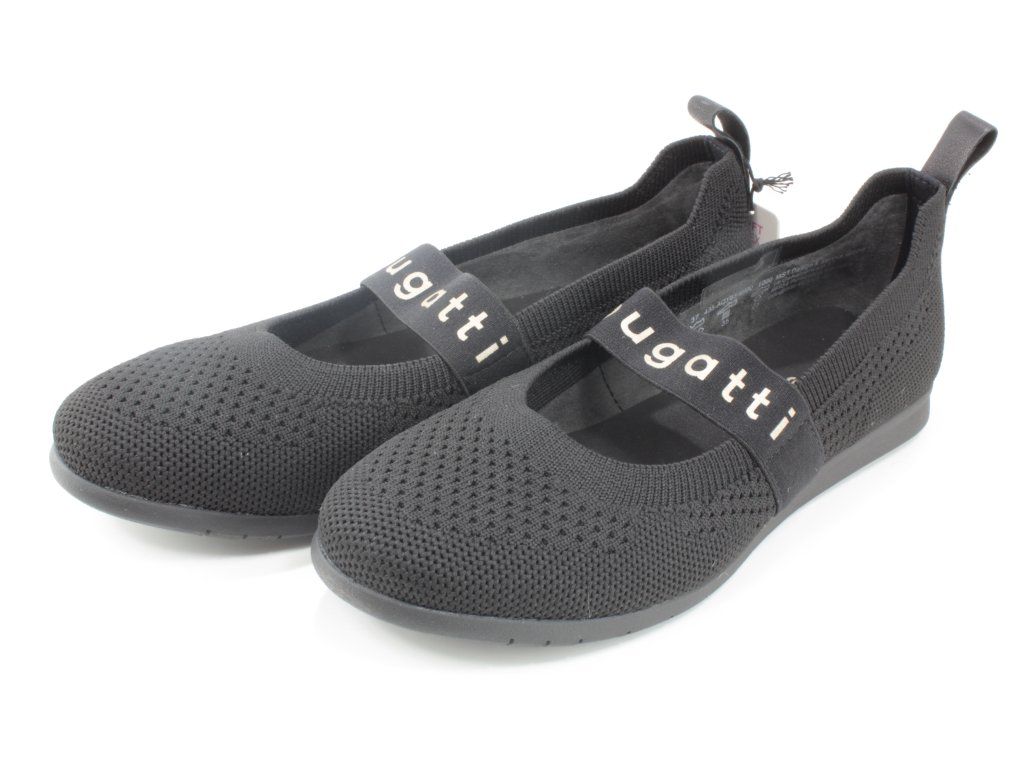 Baleríny značky Bugatti mají svršek vyroben z textilního úpletu - který je z vnitřní strany vyztužen ohebnou ale zpevňující textilní podšívkou. Díky tomu je elastický a zároveň stálotvarý. Svršek tak "nepadá" a po čase se takzvaně "nevyglajdá". Udržuje si tak stále svůj tvar. Nárt je vybaven gumovým páskem s logem značky. Podešev je ohebná - flexibilní s mírným klínkem pod patou. Stélka je vybavena paměťovou pěnou, díky čemuž tlumí rázy při chůzi.