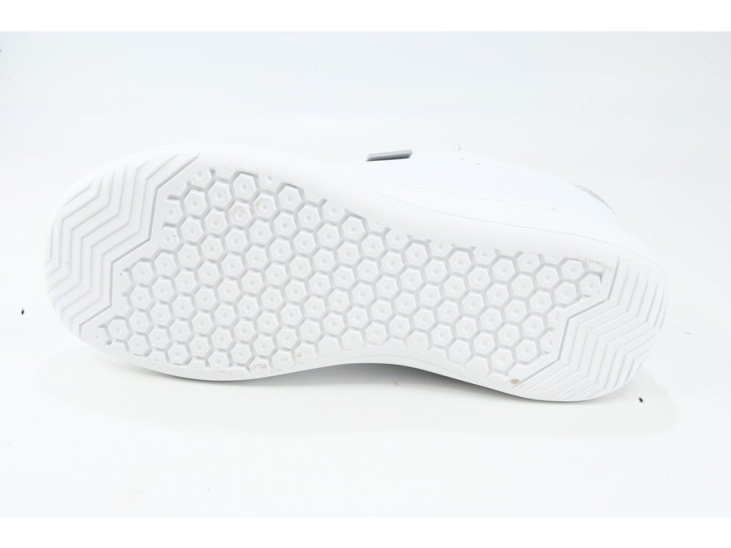 Dámské polobotky. Model s hodně kulatou prostornou přední částí a odlehčenou flexibilní podešví přímo vybízí k celodennímu pohodlnému bezstarostnému nošení. Svršek je z hladké bílé syntetiky, je snadno omyvatelný. Stélka je vyměkčená a vyjímatelná. Je možno ji vyměnit za např. ortopedickou. Obouvání pomocí klasického šněrování.