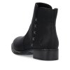 Dámské kotníkové boty značky Rieker. Model je vyroben v imitaci hladké kůže. Kotníková část je zdobena elegantním švem doplněným páskovými křížky. Horní část nad tímto švem je volná, což je skvělé při chůzi - v případě širší holeně neřeže horní lem do kůže. Celkově je svršek příjemně poddajný. Podšívka - krátce střižený fleece. Stélka zateplena flaušem. Obouvání pomocí zipu. Podešev se systémem Antistress - flexibilní podešev tlumící rázy při chůzi.