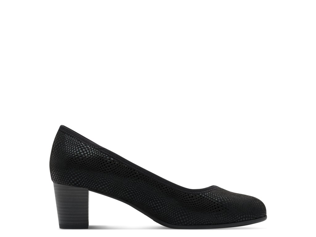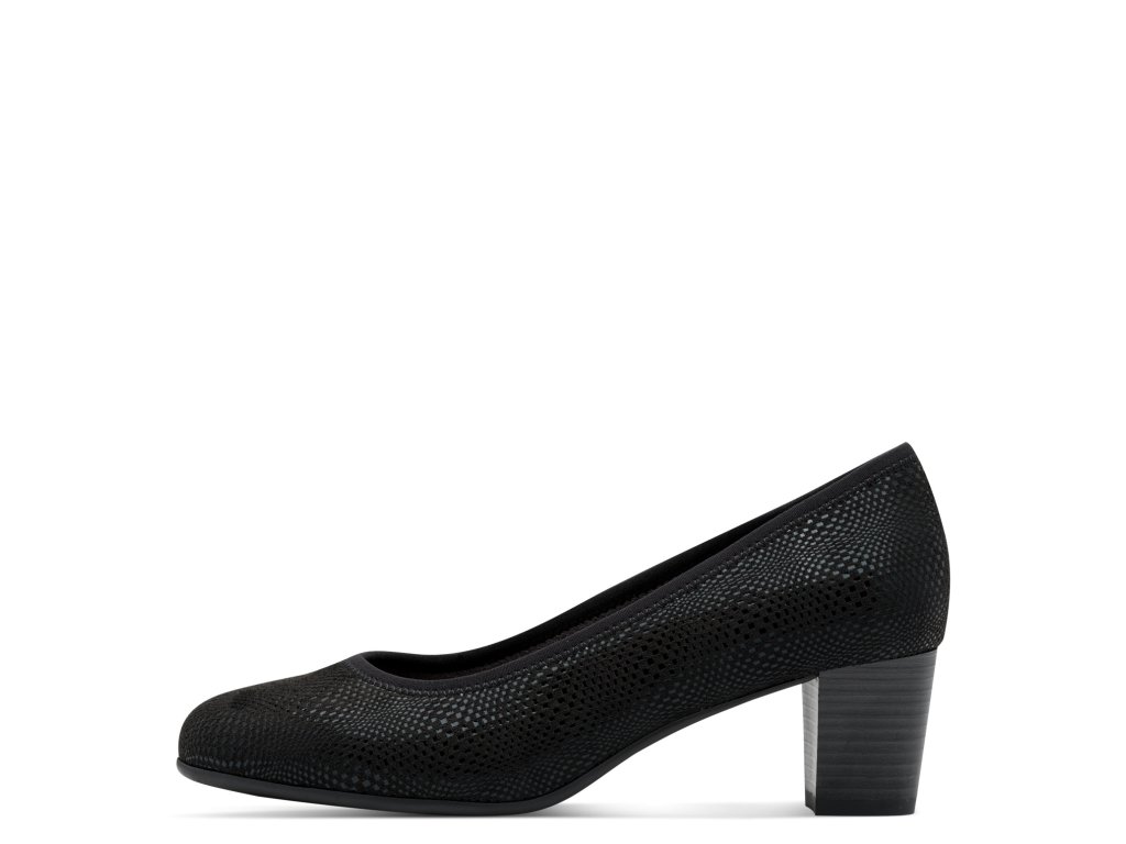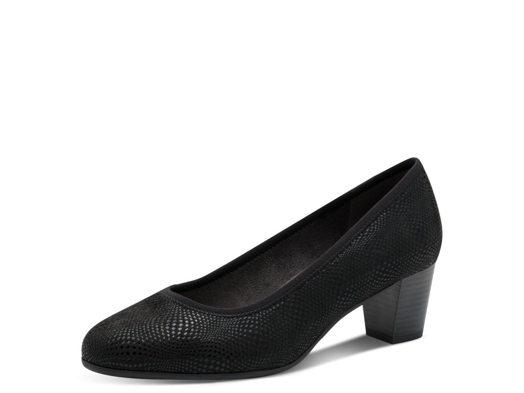 Dámské elegantní lodičky značky Jana z kolekce Soft Line. Svršek v semišovo - lesklém designu, hodící se jak pro každodenní nošení, tak pro různé společenské akce. Stélka je příjemně vyměkčená, takže došlap je měkký. Podešev se středním podpatkem a systémem Soft Flex zajišťující správnou ohebnost obuvi při chůzi.