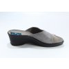 Dámské pantofle značky ADANEX. Obuv tradičního výrobce domácí obuvi je vyrobena z vysoce kvalitních materiálů a vyznačuje se dlouhodobou barevnou i tvarovou stálostí. Model s otevřenou špičkou. Svršek v kombinaci imitace broušené semišové kůže v elegantní šedé barvě a kovově šedé droboučké hadince. Pohodlná stélka s lehkou podešví podporuje příčnou i podélnou klenbu nohou. Léty prověřená podešev nebarví a nedělá šmouhy.