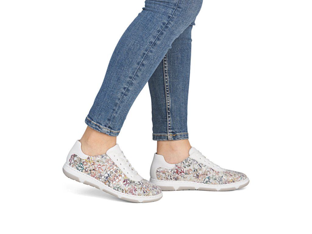 Dámské tenisky Rieker 42408-90 bílé s kytičkou s vyndávací stélkou