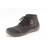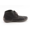 Dámské zímní kotníčkové boty značky Rieker. Ležérní styl v designu broušené kůže v černé barvě je doplněn výrazným šitím, logem značky v hnědém koženém kolečku a jemným červenými stehy ve tvaru čtverečků. Obouvání pomocí tkaniček. Model má měkký ohebný svršek a lehkou podešev na mírném klínku. Podšívka je vyrobena z textilní nízké vlny. Vyteplená je také stélka z měkké paměťové pěny. Dynamicky řešená podešev je vybavena technologií Antistress - lehká flexibilní podešev - ideálně ohebná při chůzi a tlumící rázy při došlapu.