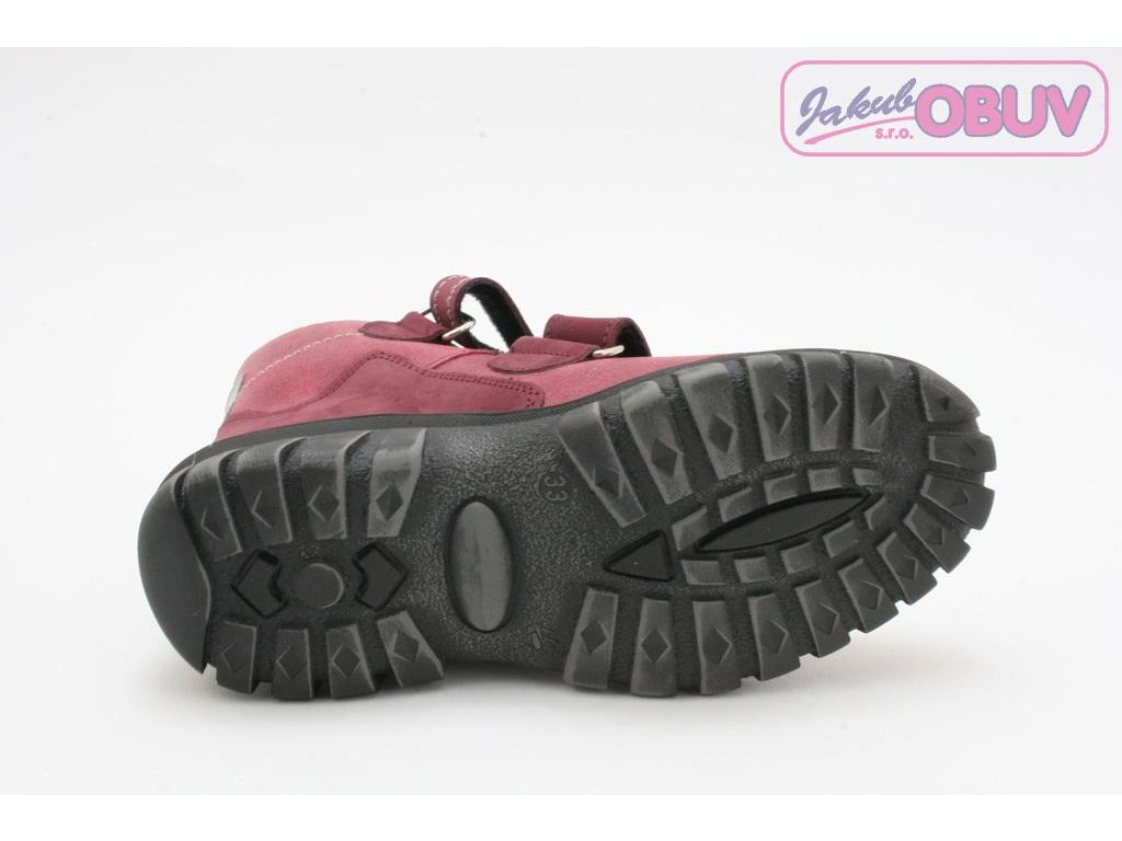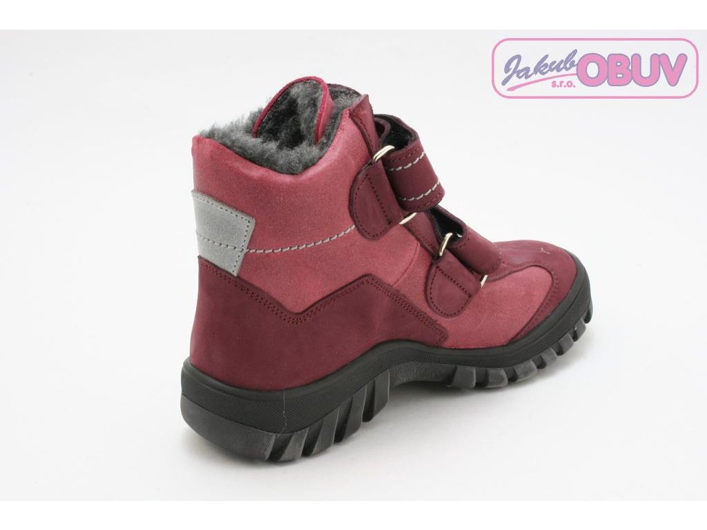 Dívčí zimní obuv tradičního českého výrobce Sázavan. Obuv je vyrobena z kvalitní broušené pravé kůže. Vyteplena je textilní střižní kožešinkou. Pohodlné obouvání pomocí dvou pásků na suchý zip. Vyšší podešev s výrazným vzorkem.