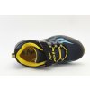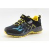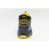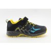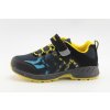 Chlapecké botasky značky ALPINEX v temně modré barvě doplněné žlutou a světle modrou. Svršek je vyroben ze Softshellu. Špice a pata jsou opatřeny černou syntetickou pevnou tkaninou chránící obuv proti drobnému okopu. Vyšší, anatomicky tvarovaná sportovní podešev s hrubším vzorkem neklouže a skvěle esteticky doplňuje celkový vzhled modelu. Stélka je vyndávací. Šněrování (tkaničky) jsou pružné. Snadné obouvání pomocí pásku na suchý zip.