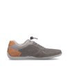 Pánské pohodlné polobotky značky Rieker. Svršek je zhotoven z přírodního materiálu - kůže, má perforovaný nárt a boční díly a je uzavírán pružným šněrovadlem. Svršek je po obvodu perforován (děrován). Boty jsou tak provětrávány a hodí se pro nošení i v létě. V obuvi je textilní podšívka. Stélka je textilní s paměťovou pěnou což zajišťuje vysoký komfort při užívání.