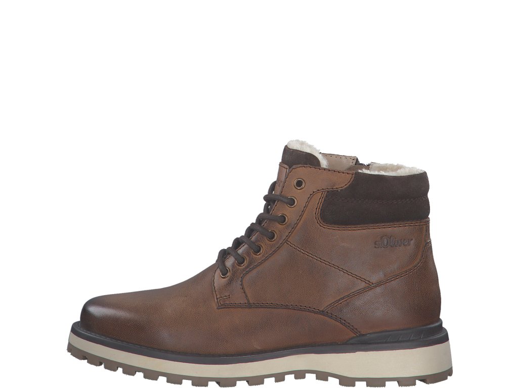 Pánské kotníčkové zateplené boty značky s.Oliver. Kožený svršek je nad kotníky ukončen filcovým límcem. Ten je dostatečně pevný, aby neztratil tvar, přitom je příjemný na dotek a skvěle uzavírá teplo v botě a nepouští ho ven. Šněrování je plně funkční, slouží ale hlavně v nastavení šíře boty. Na vnitřní straně je všit zip pro pohodlné bouvání. Vnitřek je vyteplen hustým textilním beranem. Zateplena je také stélka, která je vyměkčená a přizpůsobí se potřebám chodidla při chůzi, chůze je tak o to příjemnější.