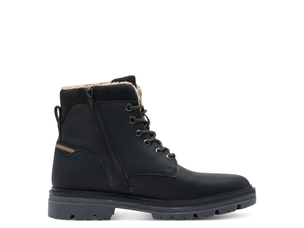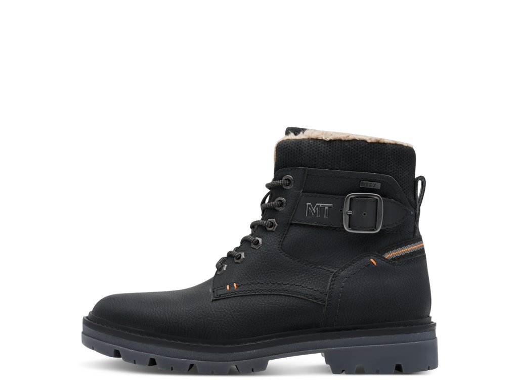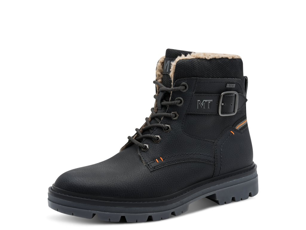 Pánské zimní boty značky Marco Tozzi. Svršek je vyroben v designu surové kůže v černé barvě a je vybaven TEX membránou odpuzující vodu. Horní lem je příjemně měkký, takže při chůzi nedře do pokožky a je stejně jaké celá bota vyteplen textilní vlnou. Jsou tak velice teplé. Šněrování je plně funkční, ale klidně stačí ho jen nastavit dle obvodu nohou. Ke snadnému a rychlému obouvání slouží hlavně zip. Robustní podešev pro pohodlnou chůzi i po nerovném povrchu.