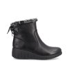 Dámské nízké kozačky značky Rieker. Svršek je vyroben z pravé hladké kůže v černé barvě. V horní části je lemován kožešinkou. Zadní část je zdobena šněrováním, které skrývá možnost botu v této oblasti mírně rozšířit. Vnitřek je zateplen textilní hřejivou podšívkou. Stélka je vyměkčená a také zateplená. Snadné obouvání pomocí zipu. Vyšší podešev skvěle izoluje před chladem ze spodu.